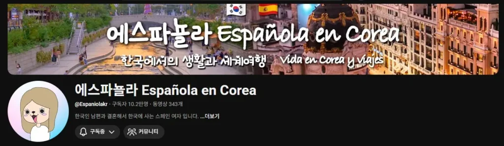 한국-스페인 국제커플의 현실적인 이야기가 궁금한 분, 외국인의 눈으로 본 한국 생활이 궁금한 분, 그리고 국제결혼이나 국제 연애를 꿈꾸는 분들에게 특히 추천하고 싶은 채널입니다. 짧은 영상 하나하나가 생각보다 깊이 있고, 보다 보면 어느새 다음 영상을 누르게 됩니다.